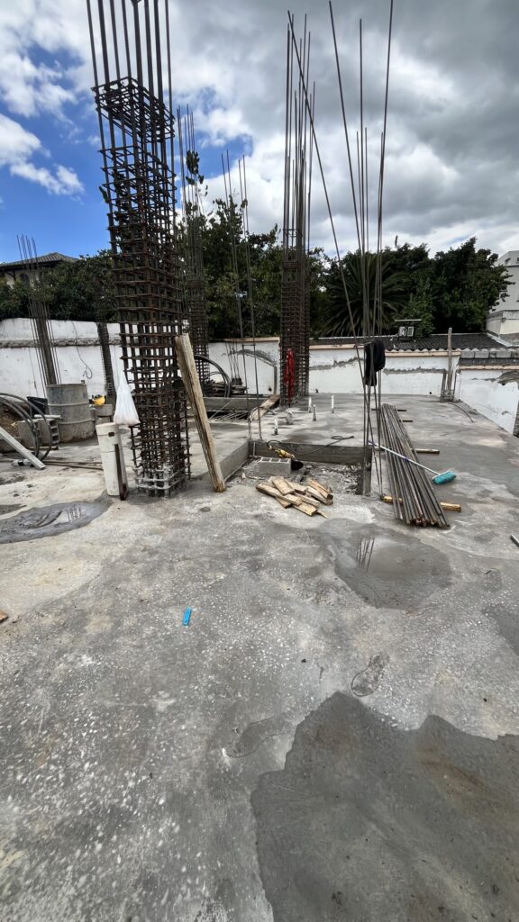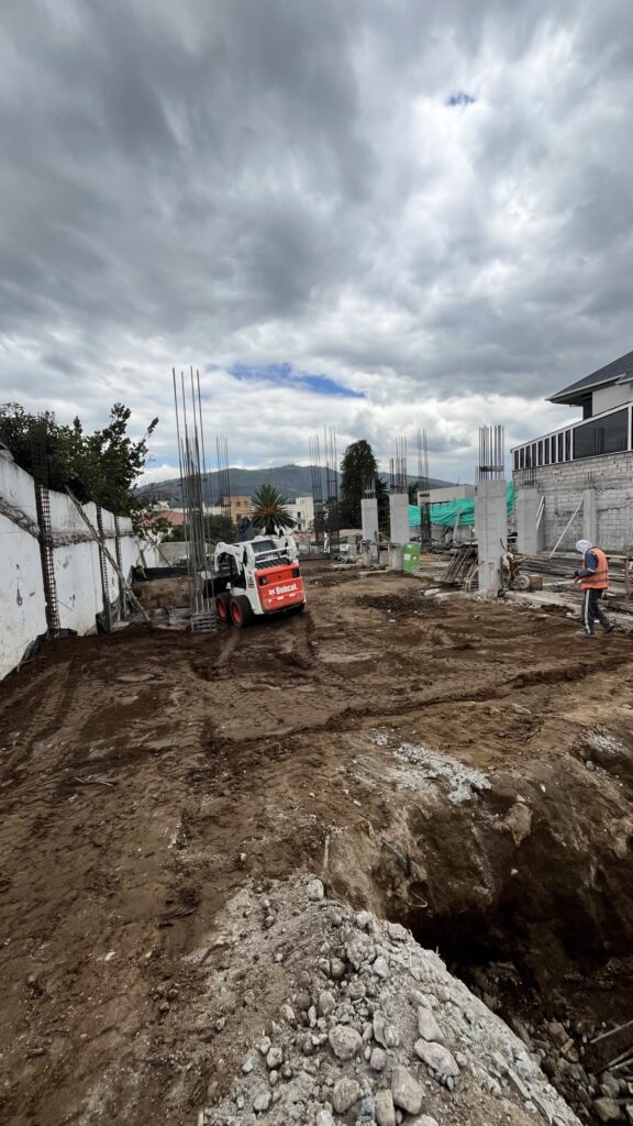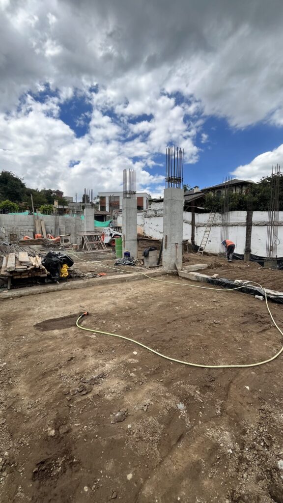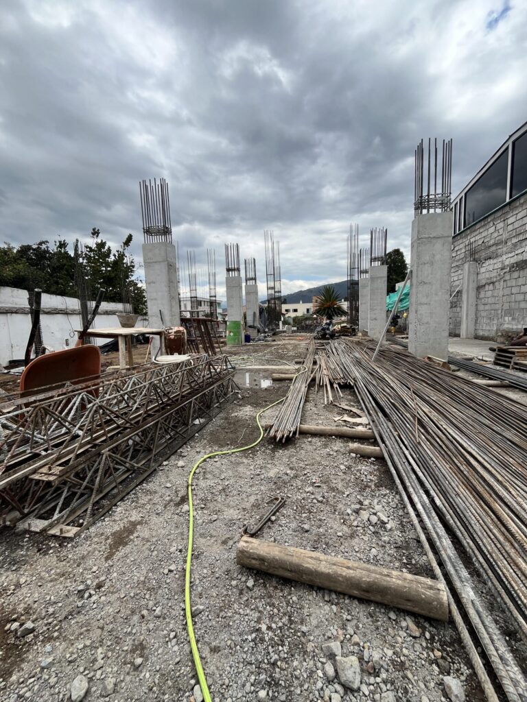 Edificio Nueva Esperanza en Cumbayá que muestra su evolución en cada etapa constructiva, evidenciando el avance de obra, el montaje estructural y el trabajo en equipo en sitio