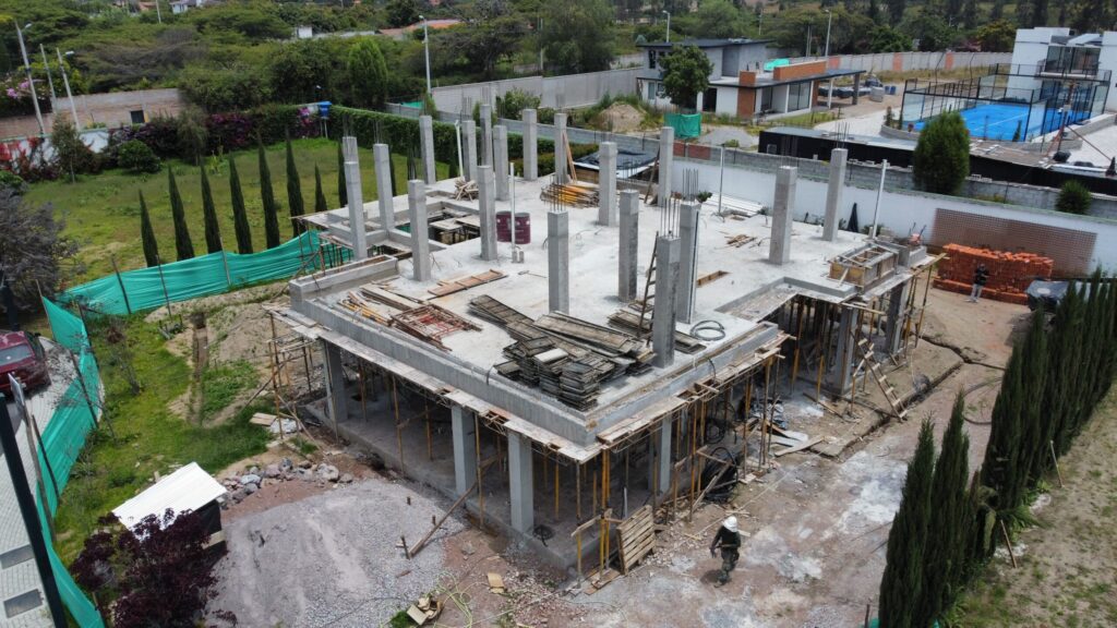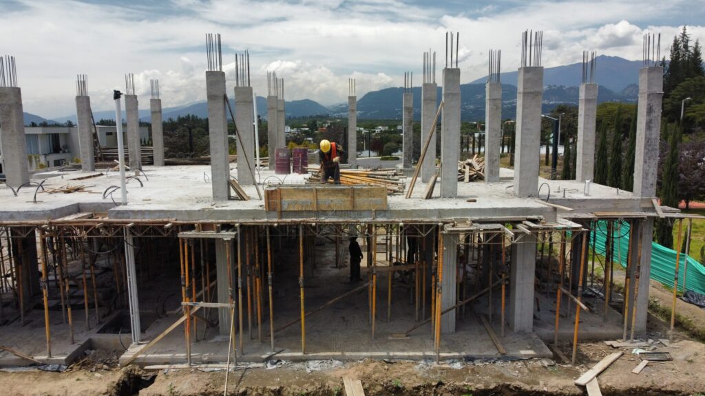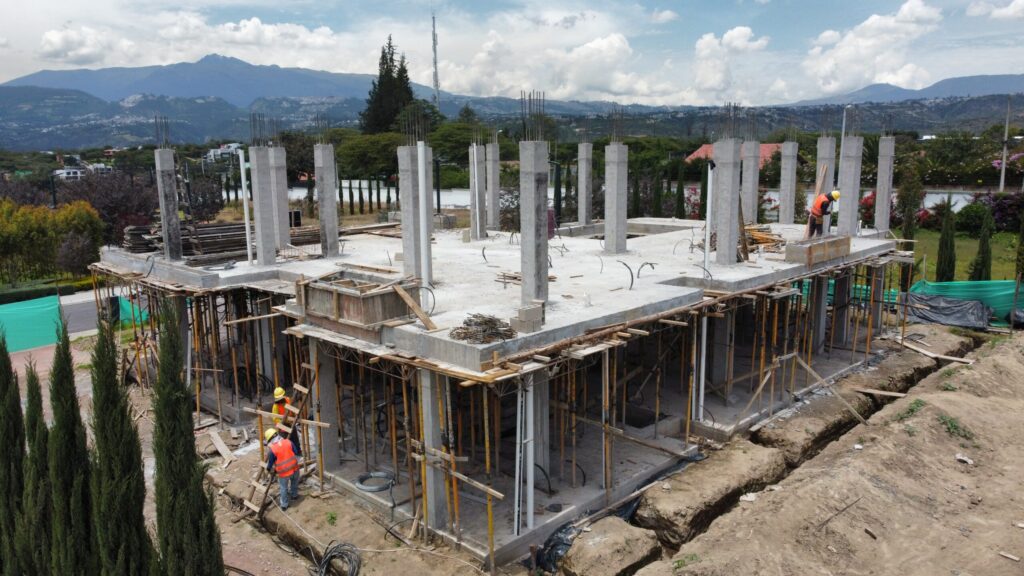 Proyecto León en Pumbo que muestra su evolución en cada etapa constructiva, evidenciando el avance de obra, el montaje estructural y el trabajo en equipo en sitio