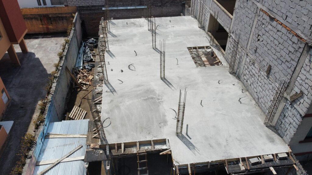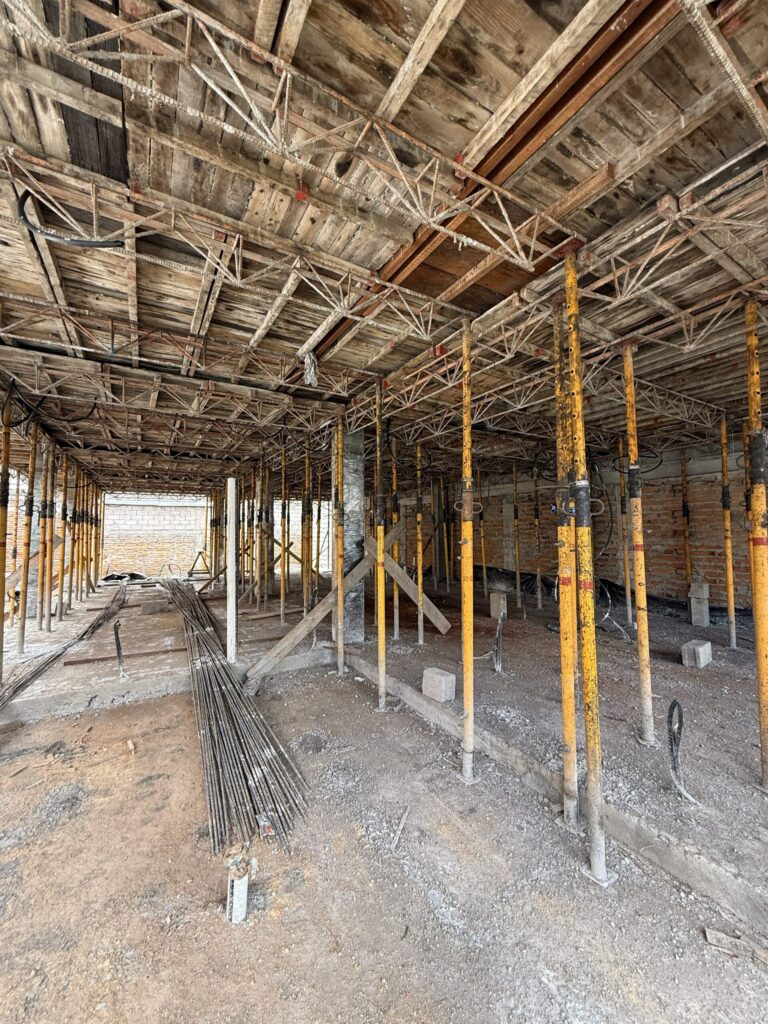 En esta etapa de fundición de la losa del segundo nivel, un proceso estructural clave que garantiza la correcta distribución de cargas y la continuidad del sistema en hormigón armado.